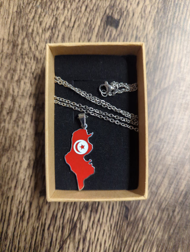 National Flag Country Shape silver Necklace 60cm Thin Chain - Tunisia is backordered and will ship as soon as it is back in stock.
