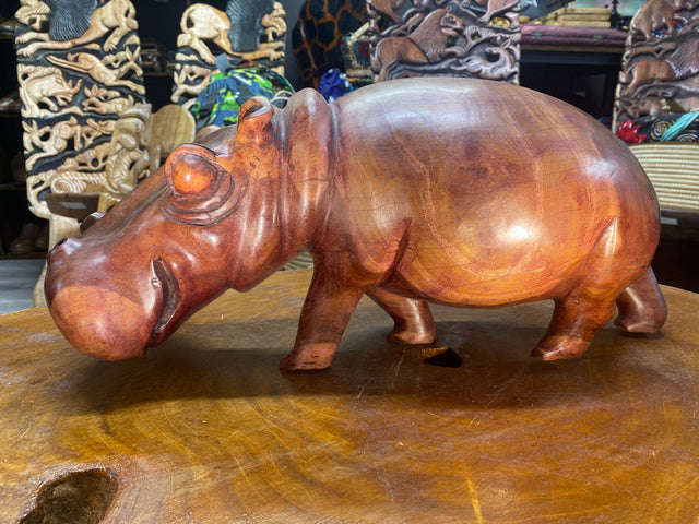 Big Reddish Colour Hand Carved Wooden Smiling Hippo - Mouth Closed (Very Heavy Piece) is backordered and will ship as soon as it is back in stock.