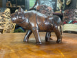 Hand Carved Dark Brown Wooden Buffalo With Horns