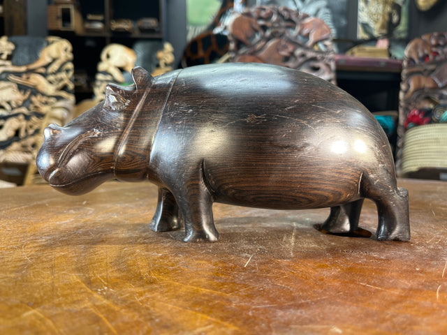 Hand Carved Ebony Wooden Hippo - Mouth Closed