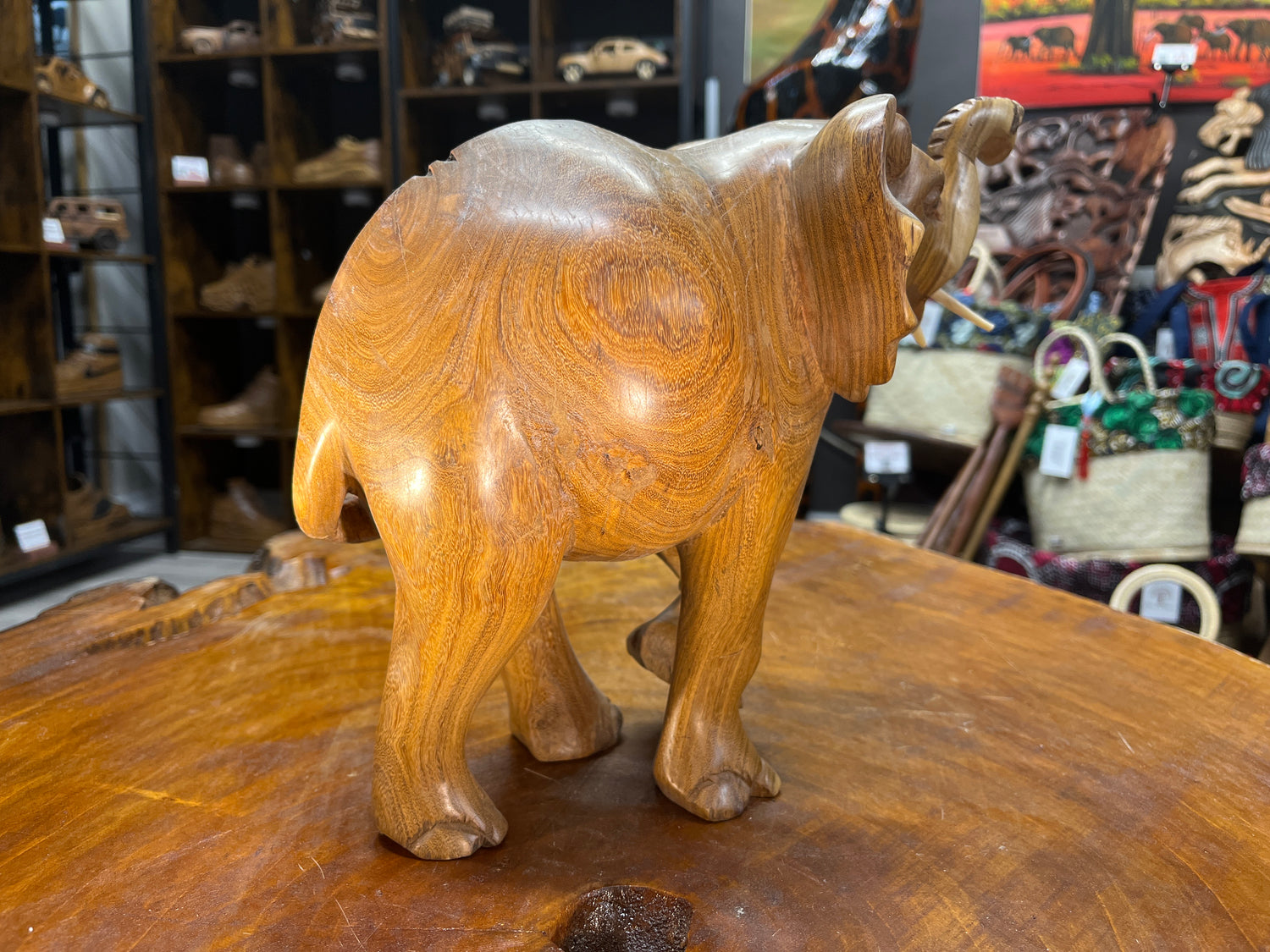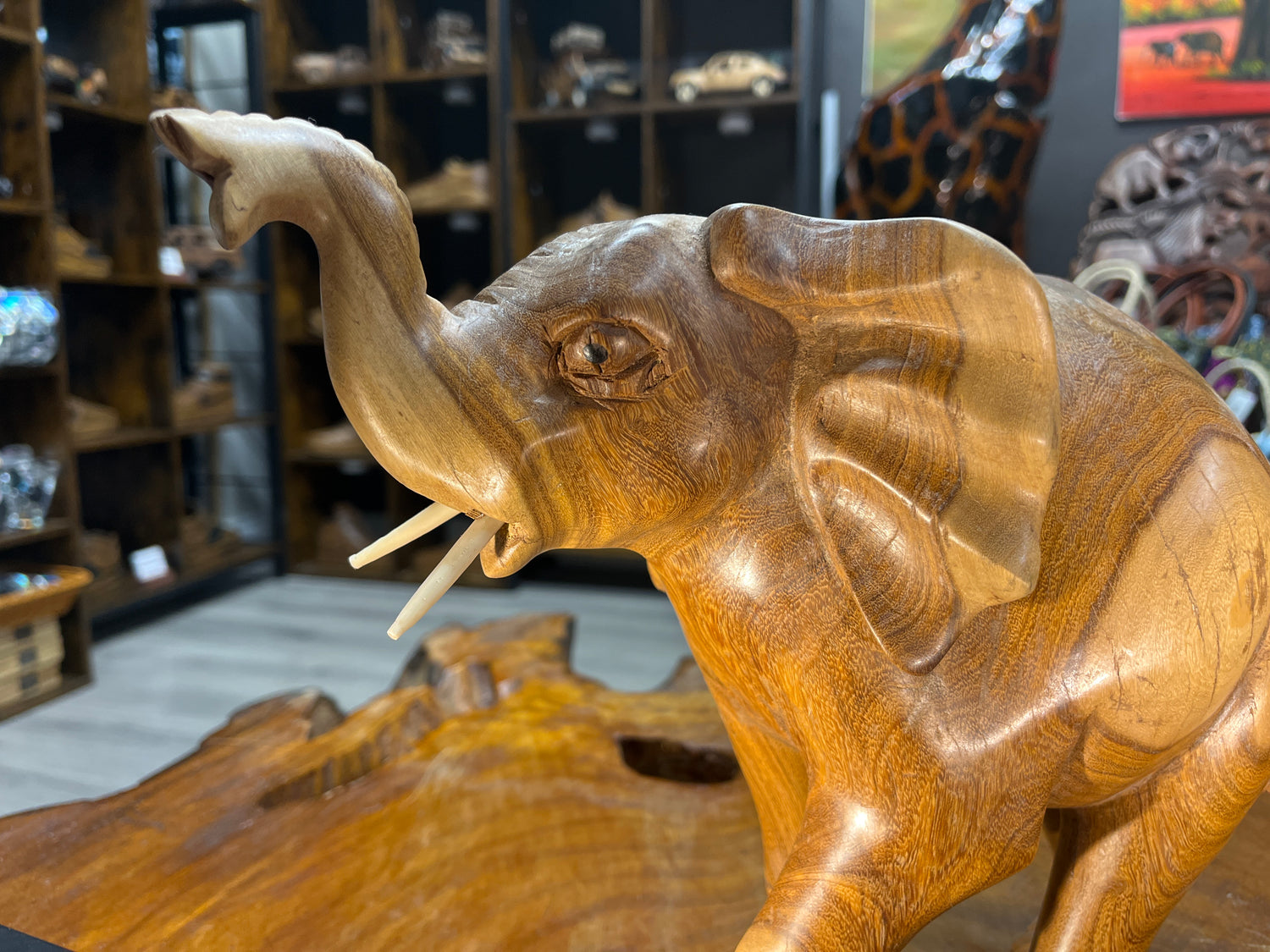 Hand Carved Elephant - Attacking Pose