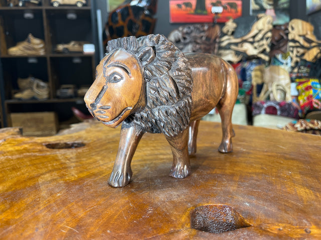 Hand Carved Wooden Lion Fresh Faced with An Intricate Mane is backordered and will ship as soon as it is back in stock.