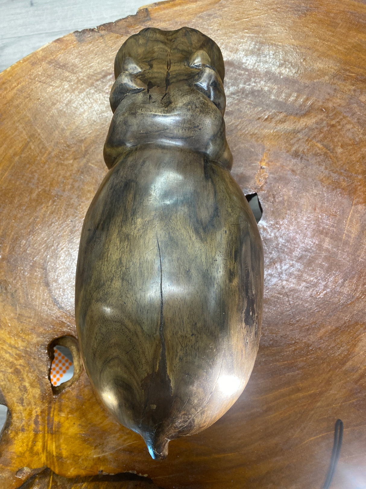 Hand Carved Wooden Smiling Hippo - Mouth Closed is backordered and will ship as soon as it is back in stock.