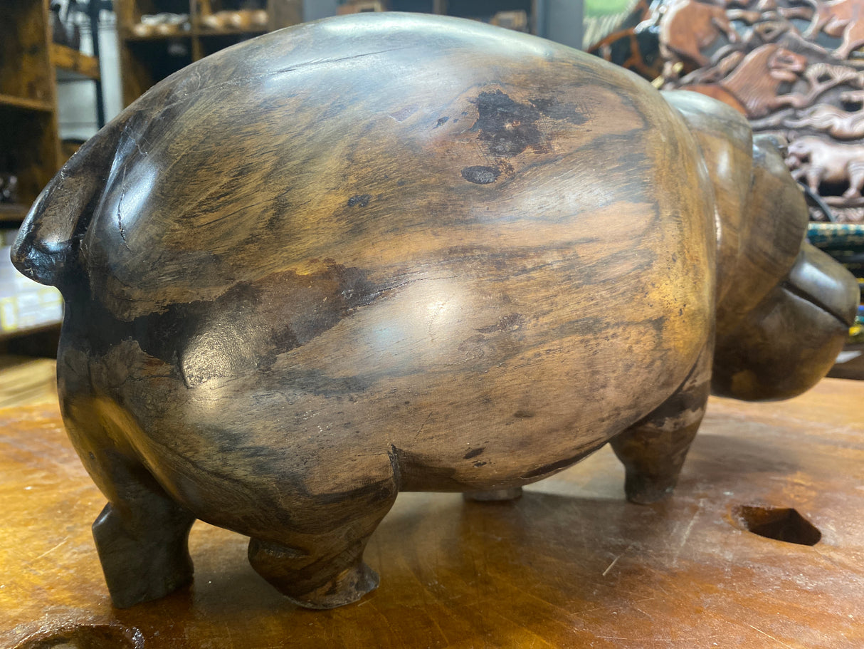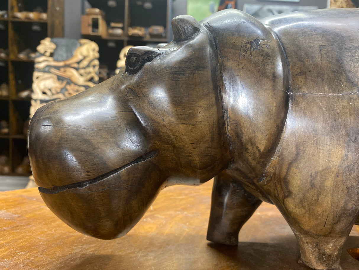 Hand Carved Wooden Smiling Hippo - Mouth Closed