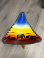 Handmade Folding Tripod Chair with an African Savannah Sunset on the Leather Seat - Tanzania