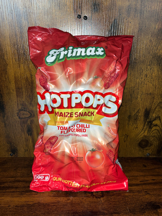 Indulge in a taste of Africa with Frimax Hot Pops Corn Maize Snack. Made from 100% natural corn, this 100g bag is a spicy and satisfying treat. Enjoy the delicious heat of African spices, Perfect for on-the-go snacking!