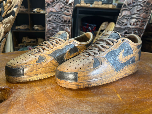 Pair of Nike Dunk Low V1.1 Hand Carved Mahogany Display Piece