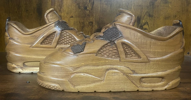 Pair of Jordan 4 V1.2 Hand Carved Mahogany Display Piece
