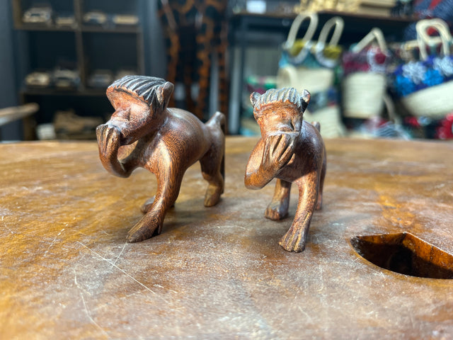Set of Two Hand Carved Sniggering Monkeys