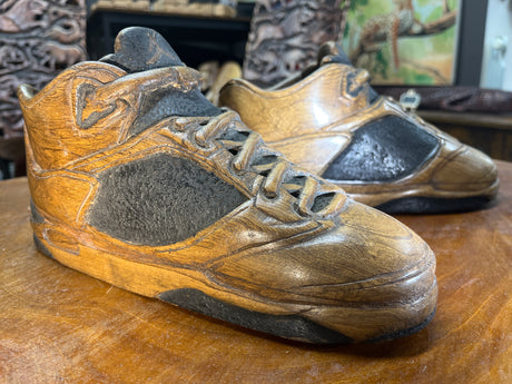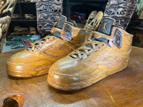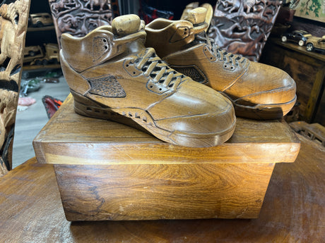 Pair of Jordan 5 V3.1 Hand Carved Mahogany Display Piece with Wooden Box