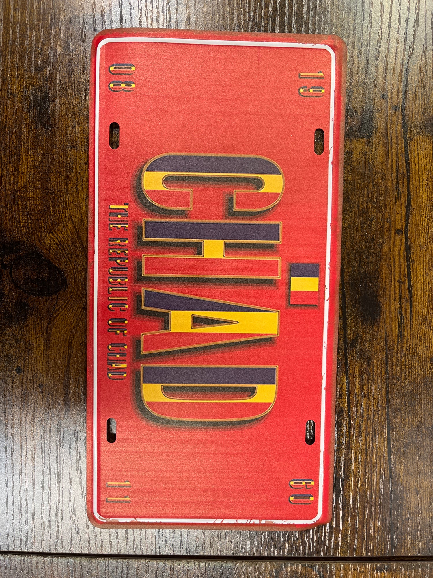 Metal Country Flag And Name Pattern License Plate Room Decor 15x30cm - Chad is backordered and will ship as soon as it is back in stock.