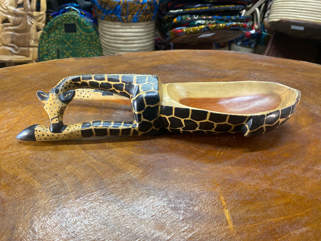 Handmade Wooden Giraffe Dish Light Colour Medium Size