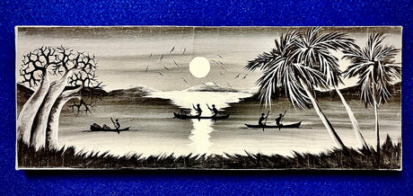 Detailed Map Drawing of Malawi framed on reclaimed Canoe Wood from Lake Malawi