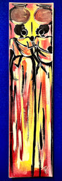 Setting: This striking painting captures the elegance and unity of two African women, one carrying a baby, their silhouettes bold against a fiery background. Draped in flowing garments, they move with grace, balancing clay pots upon their heads in a timeless display of strength and tradition. The abstract brushstrokes of red, yellow, and black create a sense of rhythm and energy, reflecting the deep cultural heritage and resilience of African womanhood. A powerful celebration of sisterhood, movement, and tradition.