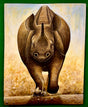 Setting: A powerful black rhino charges forward, kicking up dust with its massive hooves. The intense detail of its textured skin and determined gaze makes this painting a striking tribute to one of Africa’s most formidable creatures.
