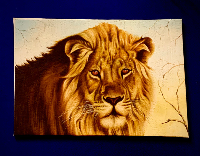 Setting: A lion’s piercing gaze dominates this portrait, its golden mane blending into the arid landscape. The deep cracks in the background hint at the harsh yet majestic nature of the wild.