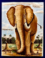 Setting: A majestic elephant stands tall against a backdrop of open savannah and a bright blue sky. The detailed strokes bring out the texture of its wrinkled skin, while small birds and wildlife add depth to the scene. The composition captures the grandeur and wisdom of this gentle giant in its natural habitat.