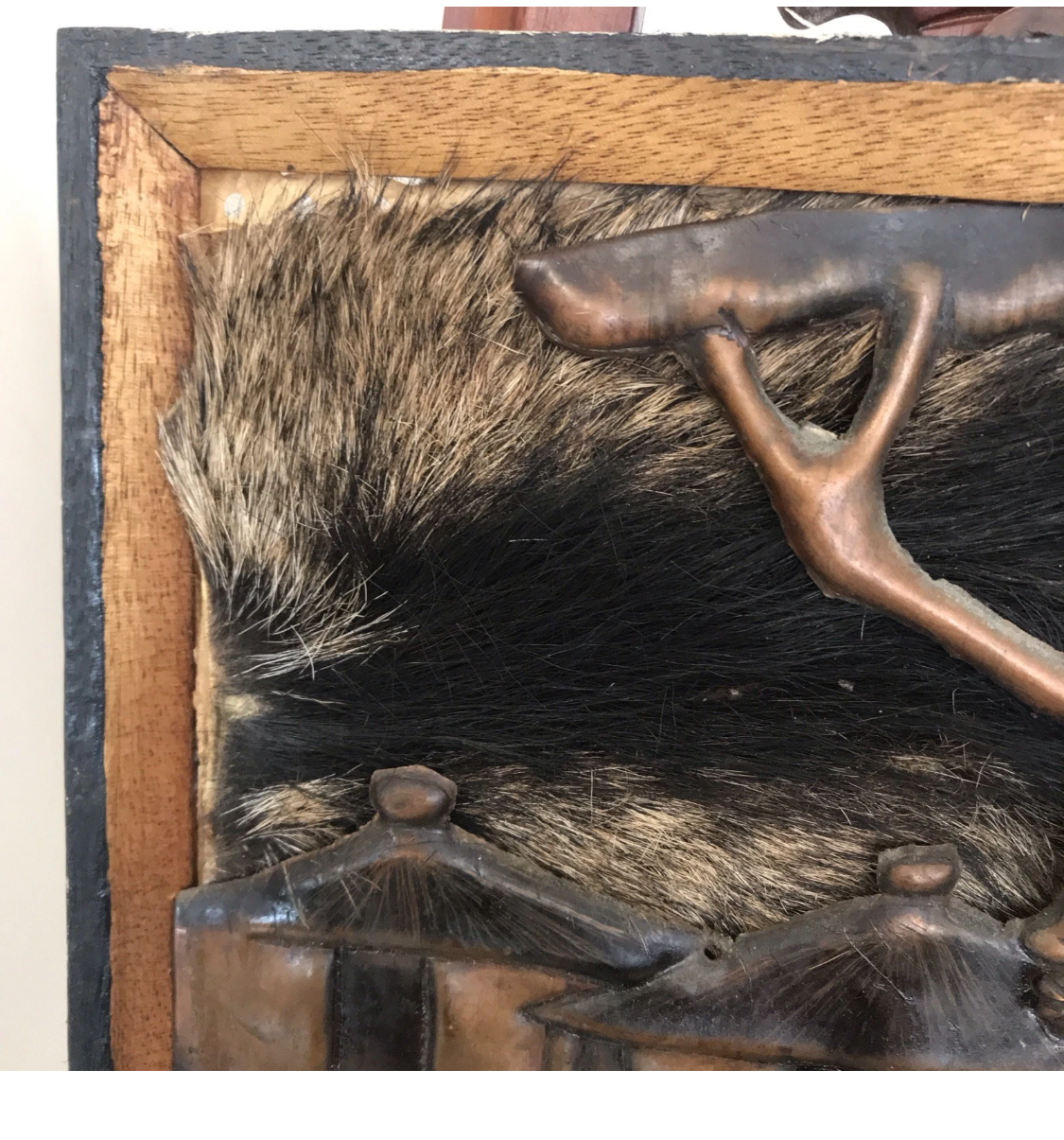 This African Man Walking to Work In Copper Frame is a stunning piece of handmade art, featuring a vintage tribal design and hammered 3-D details. At 33 x 29, it is the perfect size for showcasing in any room. Add a touch of cultural depth to your home with this authentic African piece.