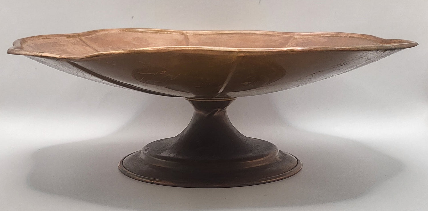 Large Handmade Copper Pedestal Bowl Scalloped Edge