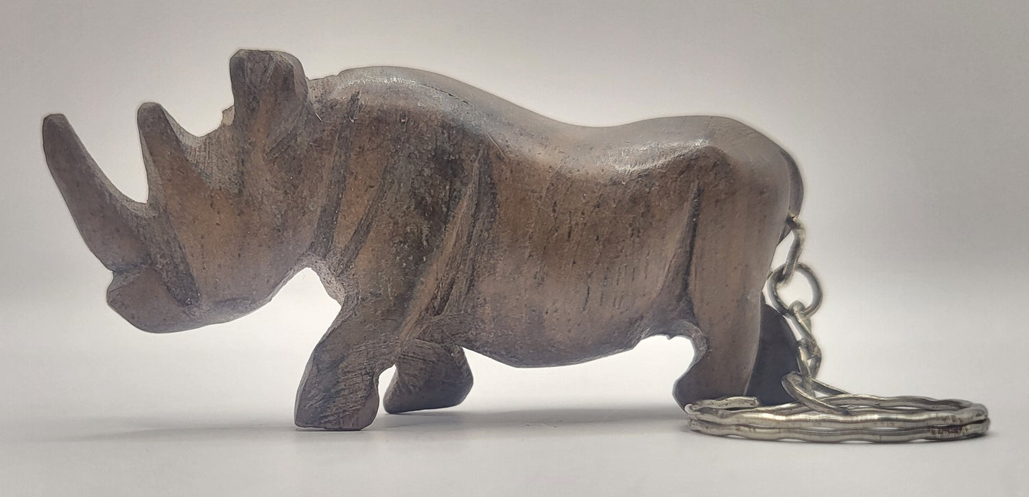 Wooden Animal Keychains - Ebony Rhino is backordered and will ship as soon as it is back in stock.